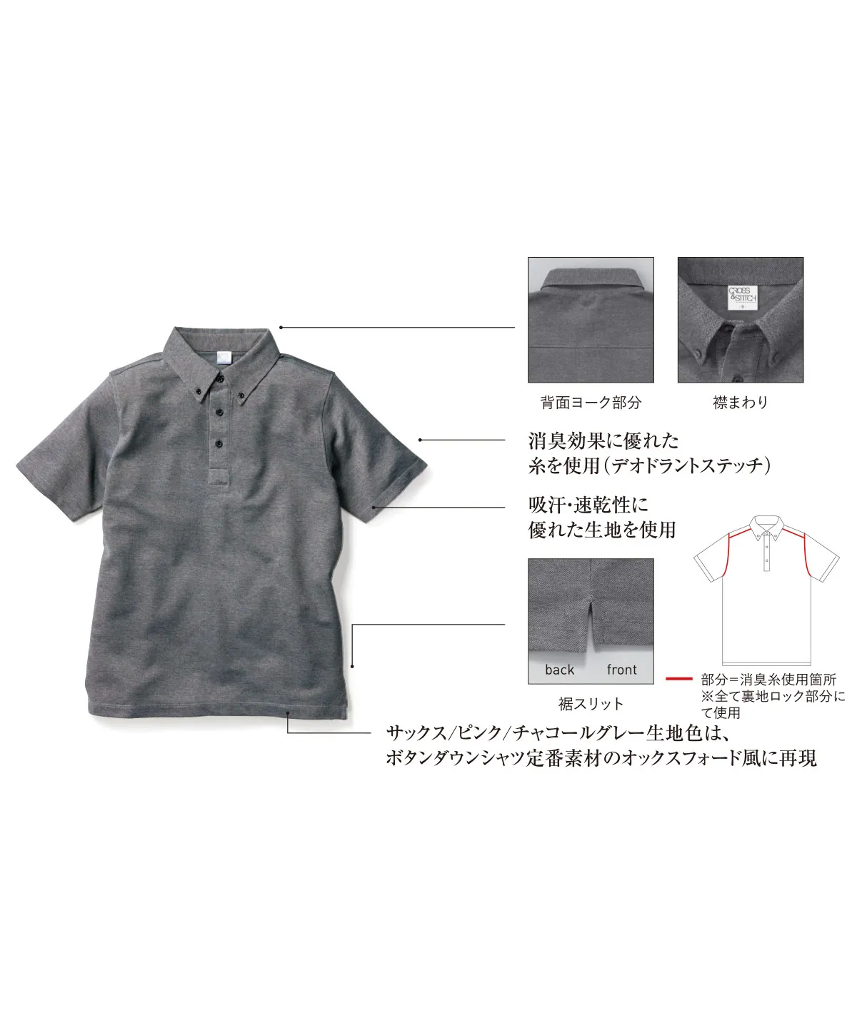 サックス/ピンク/チャコールグレー生地色は、ボタンダウンシャツ定番素材のオックスフォード風に再現